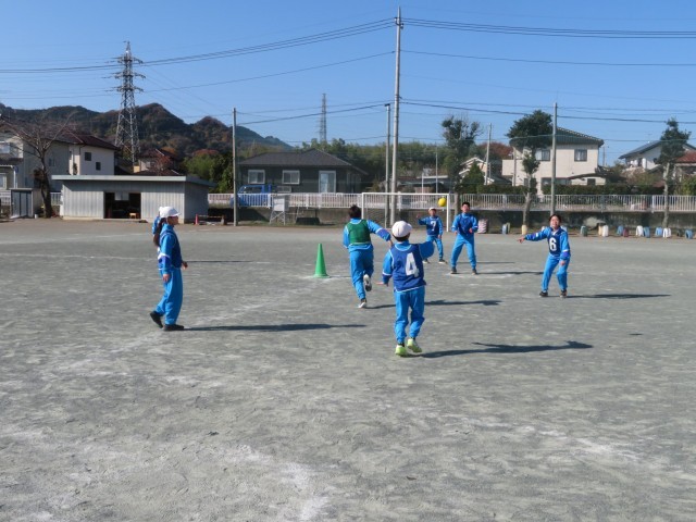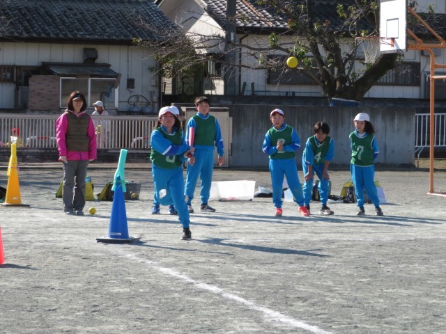 ティーボールです。試合を重ねるごとにどんどん上達しています。点をとるには?一番いい守備のパターンは?5・6年生にもなると、相手の特徴を考えたうえでの作戦をたてようとすることができます。試合の中では、瞬時に判断して、声を出して仲間に指示することができます。それが見ていておもしろいので、実際にプレーしている児童はとてもとても楽しんでいることと思います。
