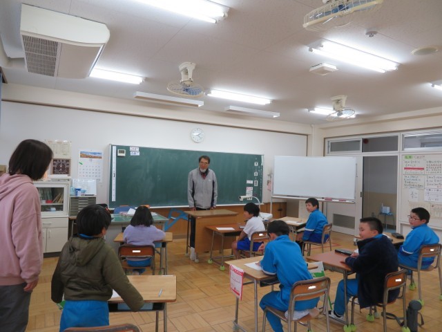 これまで何度か紹介しているとおり、「美九里じまんマップ」の人バージョンを作成中の3年生です。今日は、地域でいつも見守りなど様々な面でお世話になっている方にインタビューさせていただきました。3年生はとても嬉しそうでした。インタビューできたことはもちろんですが、その方は児童一人一人のことをよく知ってくださっていて、一人一人に声をかけてくださっていたからだと思います。美九里西小の児童は、本当に地域の方々から愛されて大切にされているんだと、あらためて思いました。