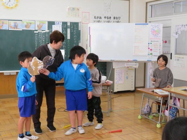 「はしのうえのおおかみ」を通して、「あたたかい心」について一生懸命考えていました。おおかみさんの気持ち「まえより ずっと いいきもち」の変化を考えました。1年生の口からでる言葉がみんな優しくて、温かくて、友達も一緒に同じ気持ちになりました。今現在、人権集中学習期間なので、とても大切なこととして1年生はよく考えていました。1年生はますます、「あたたかい心」の持ち主として、これからもずっとたくさんの人たちと関わっていくことと思います。