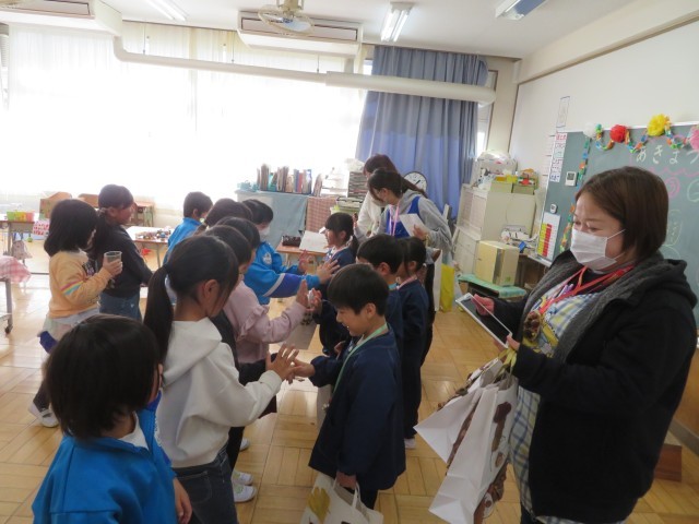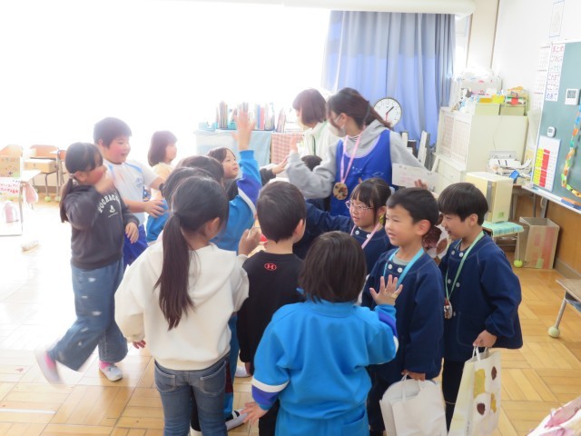 楽しい時間はあっという間に終わりました。1年生も園児も先生たちも!みんなが「笑顔いっぱい」な時間でした。園の先生方には、この「あきまつり」での1年生の成長だけではなく、国語や図工の作品など、たくさんの学習の成果物も見ていただきました。先生方の喜ぶ顔以上に、たくさんほめてもらって嬉しそうな笑顔、「がんばってるよ!」と胸を張って話している1年生の表情がとても印象的でした。ほんとうに、がんばりましたね、1年生のみんな!