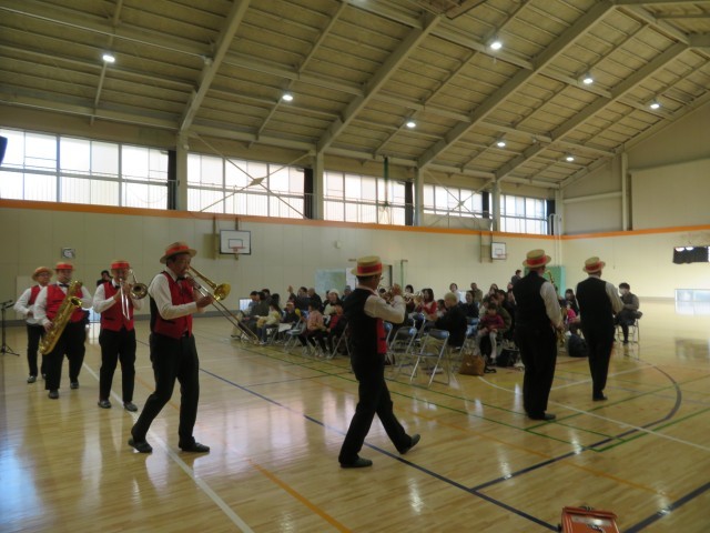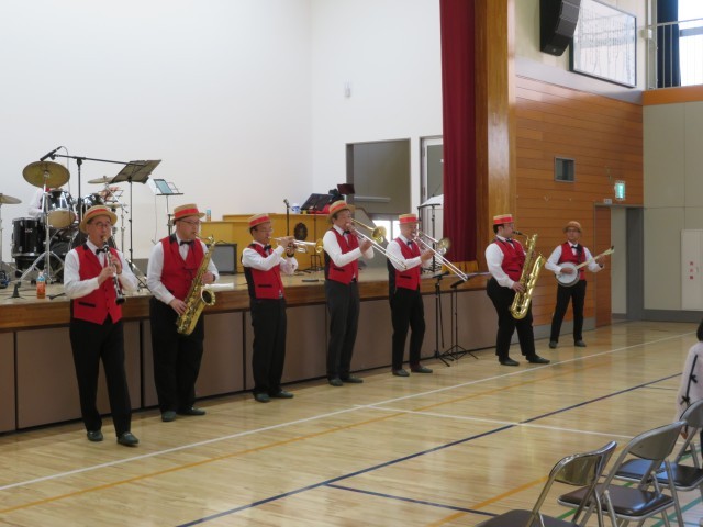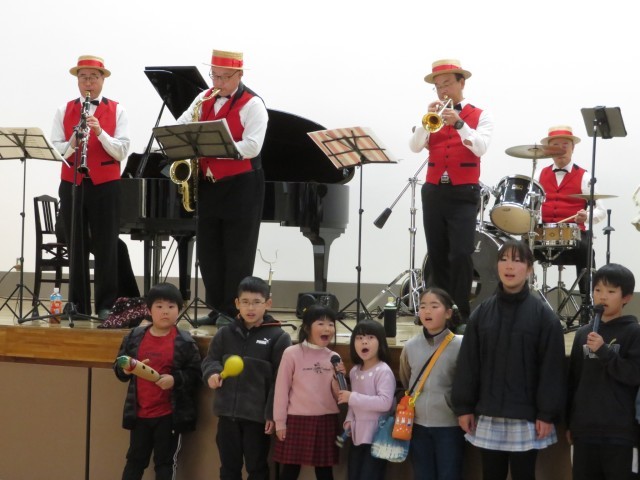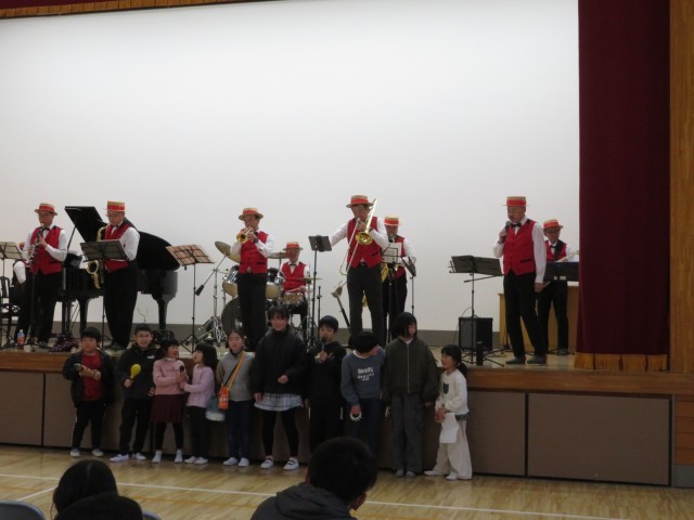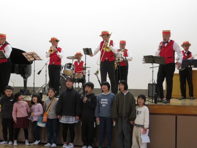 なんと!デキシー・クイーンズの皆様が、美九里西小の校歌を演奏してくださいました。もちろん子供たちも一緒に歌いました。このサプライズにはみんな大喜びです!私達のために校歌を一緒に演奏してくださるなんて!ありがとうございました。また、アンコールにもこたえてくださり、私達の近くで演奏してくださいました。