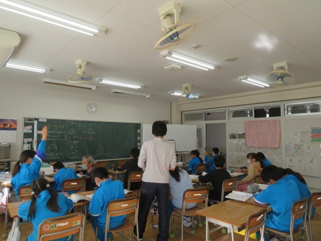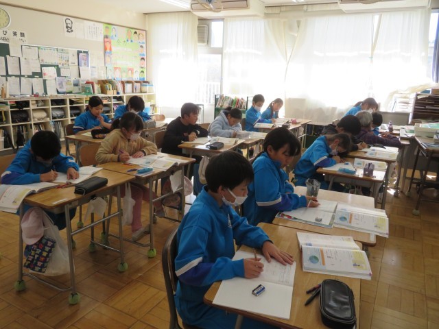 「正多角形と円」の学習中です。今日は、円周の周の長さを円周率を使って求めることができるようになりました。ちょうど教室では、教科書の問題にチャレンジ中でしたが、教室に入ると、すごい集中力とやる気を感じました。どんどん問題を先に進めたい!合っているか早く確かめたい!友達に説明したい!などなど。「できた!分かった!」が「やる気いっぱい」に、そして「学びいっぱい」につながるのだとあらためて思った5年生の教室でした。