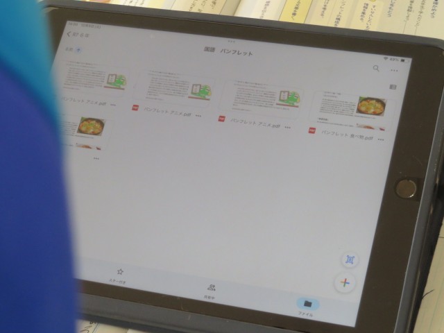 「おすすめパンフレットを作ろう」の学習が始まりました。「ここでは」相手や目的を明確にして、読む人が実際に見たり読んだりしたくなるように工夫を加えて推薦文をつくります。教室ではちょうど、推薦したいものを決めていました。そこで参考になるのは、昨年度6年生の作品がタブレット上で見られることです。もちろん「これまで」学習してきた知識を存分に使って、書き表し方を工夫したり、読む人の心を動かす言葉を使い、推敲を繰り返したりして取り組んでいきます。