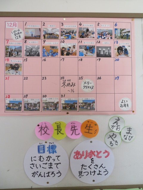 児童に大人気の「西うさぴょん掲示板」(教務主任とのコラボ)がリニューアルされました。写真でこの2学期の毎日を振り返っています。1日たった1枚の写真ですが、その日の学校の出来事、教室の雰囲気、児童の言葉や表情が鮮明に思い出されるようです。2学期は残りわずかとなりましたが、みんなで有終の美を飾れるよう、今週も頑張ります!