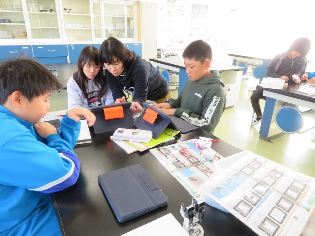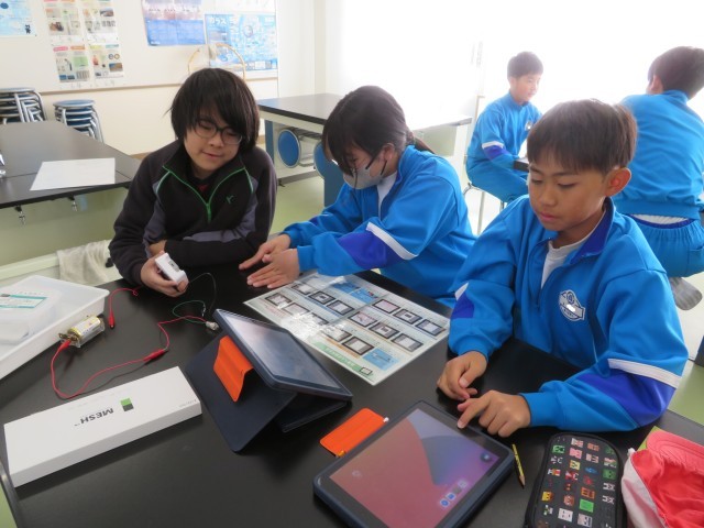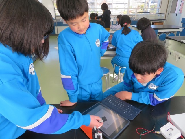 「電気と私たちのくらし」の学習でプログラミングを体験していました。明るく(暗く)なったら明かりがつくように、コンピュータを使ってプログラミングしていました。もちろん、明るさのセンサーによってスイッチが入るような回路も考えています。私(校長)にはその仕組みがよく理解できませんでしたが、児童はすぐに考えつきます。すごいです!時には、考えたとおりに動かないこともありましたが、そんなときに「どうしてなのかな?」と真剣に考えたことが素晴らしいです。これこそまさにプログラミング的な思考が働いている証です。
