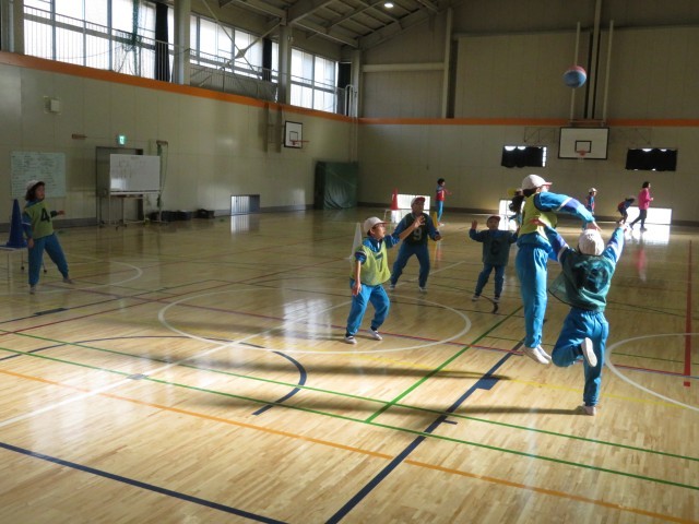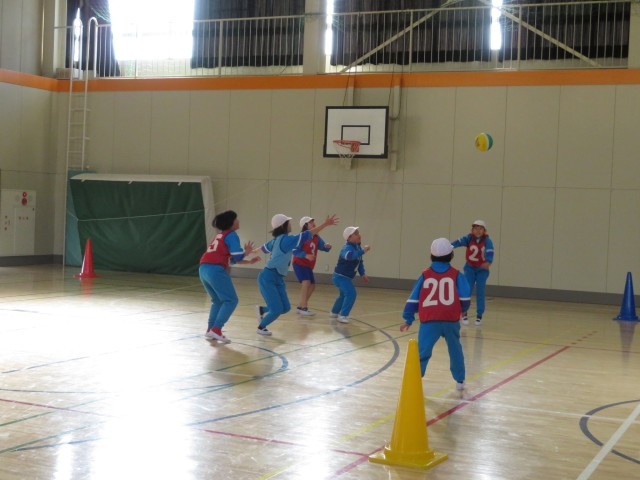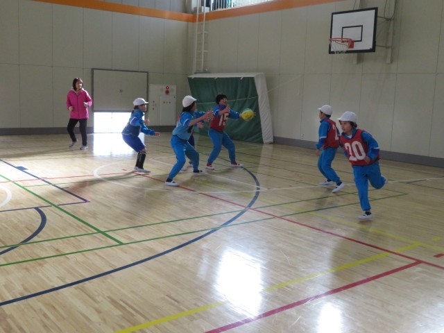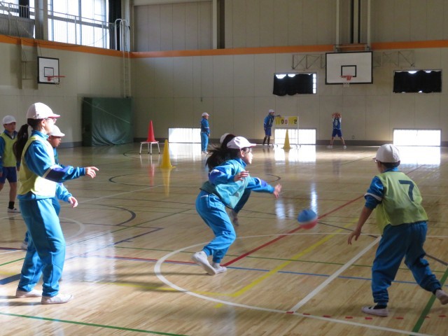 「頭を使ってパスをつなぎ、シュートを決めろ!エンジョイ コーンボール」総まとめの試合を楽しんでいました。「ここでは」チームプレーの必要な球技において、作戦会議「パワーアップタイム」でチームプレーの充実を図り、チームワークを強くすることをとても大切にして学習を進めてきました。「これまで」とはかなり大きく向上しました。3・4年生とは思えないほど、質の高いチームプレーがあちこちで見られ、かけ合う言葉のレベルも高く、まさに「ここでは」目指していた以上の姿が見られたのではないかと確信しています。