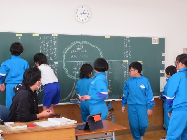 2学期をふりかえって、3学期に頑張りたい自分を書き出して、冬休みの計画をたてて・・・。さあ!そこまでやったらみんなで外に出て楽しく遊んでいます。4年生は、休み時間になるとよくみんなで校庭や教室内で仲良く遊んでいます。でも今日はちょっといつもと違って特別な時間です!3学期もみんなで仲良く過ごしてくださいね!