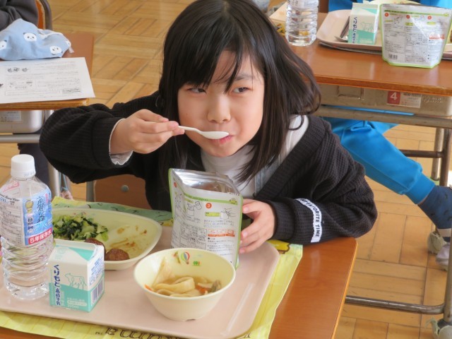 どの教室をまわってみても、みんな「おいしい!」と食べていました。想像していたものと違っていたのでしょうか。また今日は非常食の重要性、「もしもここで災害がおきたら?」「自分にできることは?」を考え、非常時に食べることができることのありがたみを想像して感じることもできました。なので、みんな今日のアルファ化米を、大事に大事に味わって食べていました。そんな行動がとれる美九里西小の子供たちを誇りに思うとともに、もしも!のときに家族や地域の力になれる存在になっているのではと確信しています。