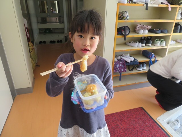 たくさんのおもちを満腹いただいて大満足です。みんなで食べるとおいしいですね!どの味も大好評でしたが、子供たちの一番人気はポテトチップスのおもち!!だったようです。ごちそうさまでした!