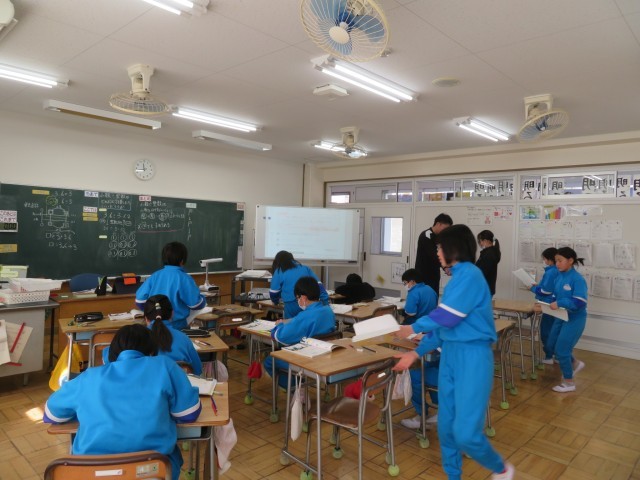 「小数÷整数」の学習に入り、今日はその計算の仕方を考えました。0.1のいくつ分で考えたり、位ごとに分けて図にして考えたりするとできました。教室では「ふりかえり」問題にどんどん挑戦していました。まず第一問目は「8.4÷4」の計算の仕方を説明しなければなりません。解くのはできるのですが、分かりやすく言葉で説明をします。何度も書いたり消したりしながら、分かりやすく説明しようと努力していました。