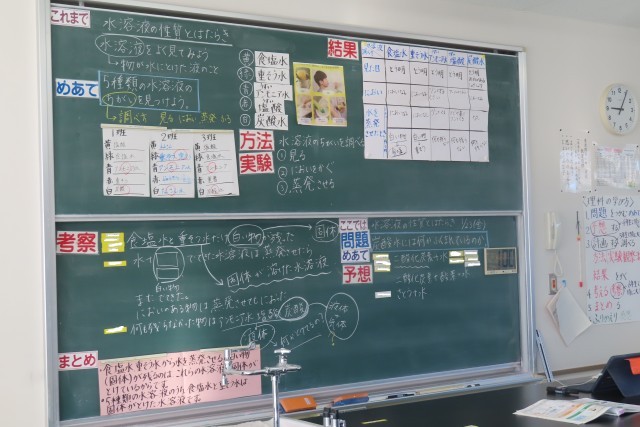「水溶液の性質とはたらき」の学習です。今日は、炭酸水について実験を通して詳しく知ります。炭酸水に溶けているのは何か?実験していました。どうやって実験したら分かるのか?そこを考えることが重要です。線香に火をつけて炭酸水入りの試験管の中に入れてみるなどしていました。試験官の中に線香を入れると火が消えたけど、試験管の外に出したらまた火がついた!さて、ここで考えてみます。