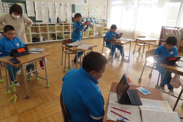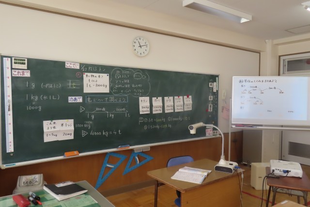 「重さの単位」の学習で、今日は「トン(t)」の単位について初めて学習しました。もちろん「1t=1000kg」もバッチリ理解しました。教室に入ると、それぞれ自分の知りたいことをタブレットで調べていました。大好きなアニメに登場するモンスターたちの体重は?また、トラクターの重量を調べていた児童、インターネット上では「1610kg」と記載されているのを見て「1tと610kgだ!」しっかり今日の学習が理解できています。