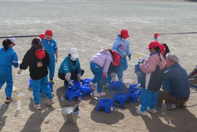 「ふゆ」を楽しみながらも「はる」の準備を進めている1年生です。全校みんなで毎日欠かさずお世話しているパンジーが美九里西小の児童のように元気にすくすく、かわいらしく大きくなっています。そして今日、1年生はチューリップの球根を植えました。早ければ卒業式に、確実に入学式にはきれいな花を咲かせて、みんなの新しいスタートを応援してくれることでしょう!優しい1年生さんたち!ありがとう!