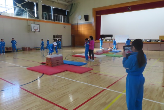 さらに技のレベルが上がっています。今日は「かかえこみとび」に挑戦です。体育館に入ったときには、上手な友達のお手本を見ているところでした。それぞれがどんなところを意識しているのか?を説明してもらったので、見ている友達の参考になりました。またアドバイスしあったり、「できた!」喜び合ったり。こうやって友達同士で高め合っている「やる気いっぱい」「学びいっぱい」学習ができるのが美九里西小の自慢です!