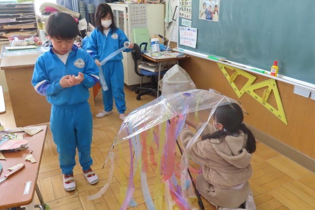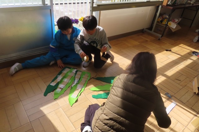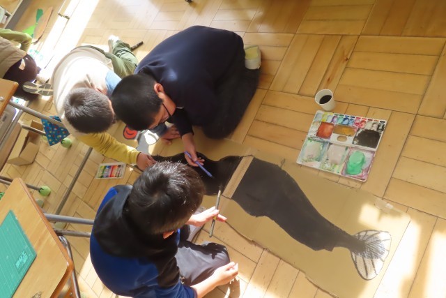 20日(金)の学習発表会で表現したいことを飾る美術品!を一生けんめい作っています。2年生と3年生がみんなで協力しながら作り、とても上手です。発表するセリフを頭に浮かべながら世界を作り上げています。本当に本番がとても楽しみです!