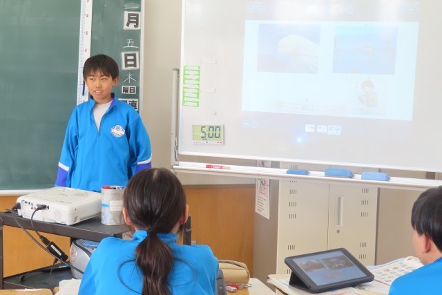 Unit 7 「My Best Memory」小学校6年間の一番の思い出を英語で発表しました。6年生の話す英語ははっきりとしていて100点満点!それは、友達にきちんと伝えたい!聴いている友達のことを意識したスピーチができたからです。私(校長)から、6年生の英語のレベルは、もう中学校での英語学習をいつ始めてもいいところまできているので自信をもって英語を使ってほしいことを伝えました。さあ「このあとは」最後のユニットが待っています。スピーチのレベルアップ(小学校の集大成としての)に期待します。