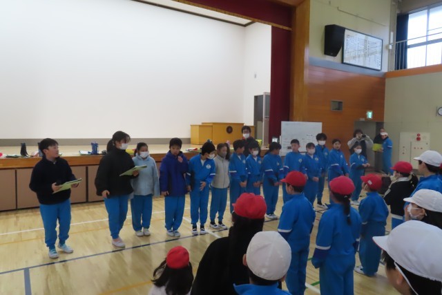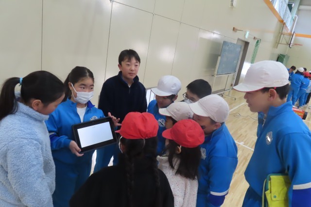 美九里西小ではいつもみんな仲良く「笑顔いっぱい」でいられるように様々な楽しい時間が設定されています。今日は5年生のデビューです。5つの縦割り班に分かれてのオリエンテーリングでは、5年生が出題するクイズを楽しみます。「どの学年の子も楽しめるように」がキーワードです。5年生の出題技術(?)には目を見張るものがありました。