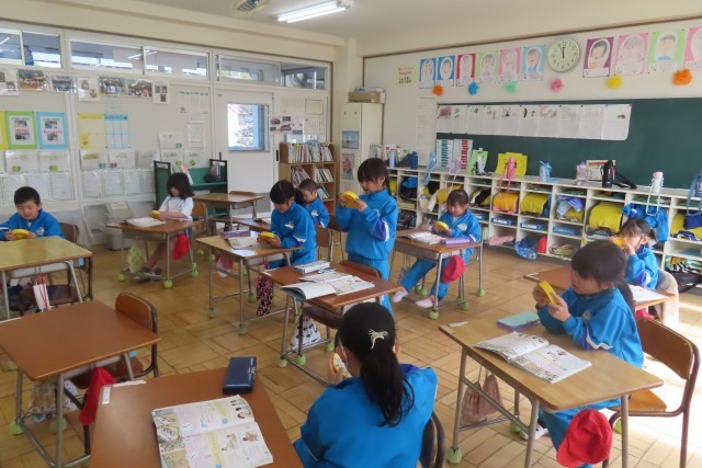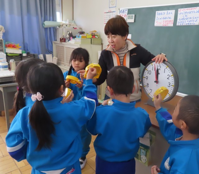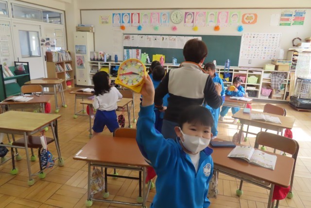 「なんじなんぷん」1年生は時計をバッチリ読めるようになりました。教室では友達がいう時刻をきいて自分の時計の針を動かします。もうバッチリです!「2じ40ぷん!もうかえるじかんだね!」「12じ47ふん!はみがきしているじかん かな?」デジタル時計の多い最近ですが、時計の針を正しく読めるようになったので、ご家庭や外出先等でお子さんから時刻を教えてもらってください。