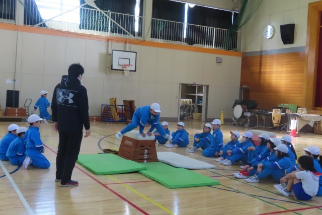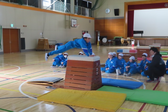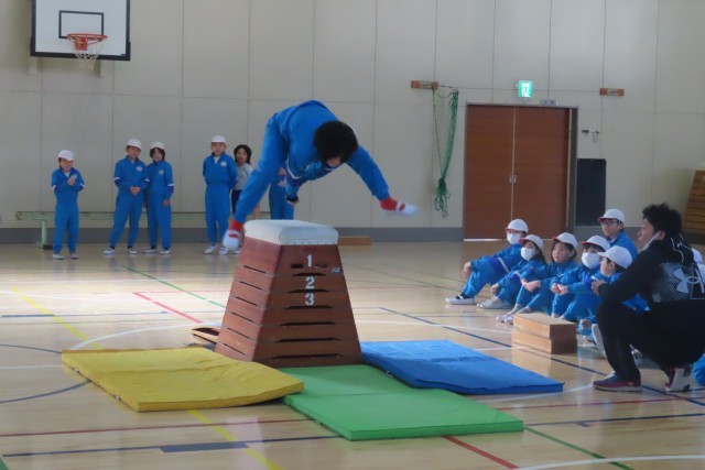 今日はとび箱の発表会をしました。自分が一生けんめい頑張ってきた成果をみんなの前で発表します。3・4年生は自分のことはもちろん友達の上達のためにもたくさん学び合ってきたので、「できるようになったね!」「すごい上達だよ!」気持ちのこもったエールの言葉かけと拍手がとても印象的でした。そして発表本番にうまくいかなくて「もう1回やらせてください!」挑戦しようとする「やる気いっぱい」の姿が素晴らしいと思いました。