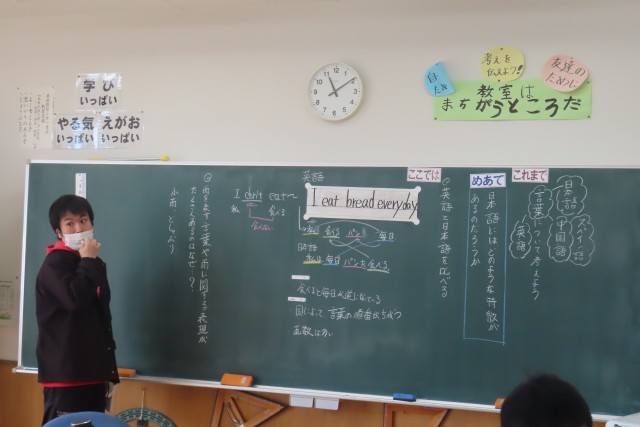「日本語の特徴」の学習に入りました。「ここでは」英語や他の言語との比較から日本語の特徴を捉えたり、言葉や表現にはその言語を使用する人たちのものの見方や考え方が表れることを知ります。また「これまで」6年間の国語の学習で学んでいることを振り返って日本語の特徴についてあらためて考える機会ともなります。先日は「大切にしたい言葉」について表現しました。このあとも、いつになっても「言葉」の使い方を大切に考えられる人でいてほしいです。