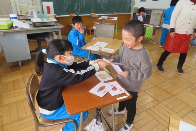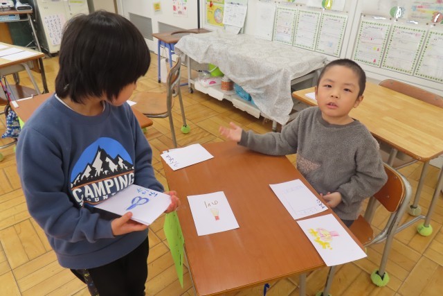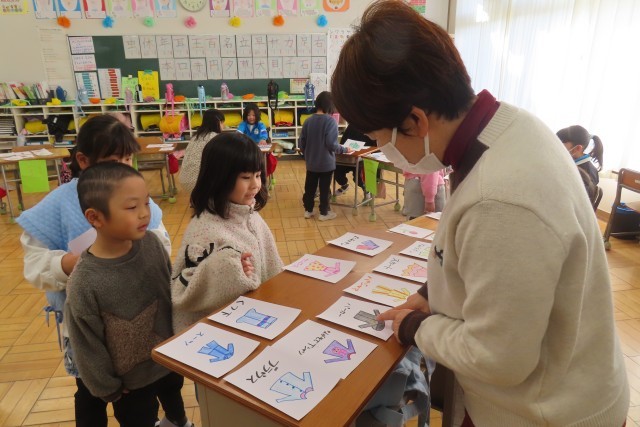「ものの 名まえ」今日は待ちに待った「おみせやさん ごっこ」の日です。「ここでは」ものには名前があること(一つ一つ、まとめて)を知り、いろいろな物の名前を集めておみせやさんごっこをします。結構品揃えのよいお店を開いてくれたうえに、とても「笑顔いっぱい」親切な店員さんなので、楽しくていい買い物をすることができました!