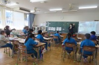 「5年生でいちばん輝いていた自分の姿」を木版画で表現します。それぞれの作品をよく見ていると、木の板から飛び出してきそうなくらい気持ちのこもった動きがよく伝わってきます。一生けんめい頑張ったこと、これからも頑張りたいこともよく伝わってきます。いちばん輝く自分を表現するための工夫として、過去の児童の作品(4・5枚目の写真)を参考にしていました。