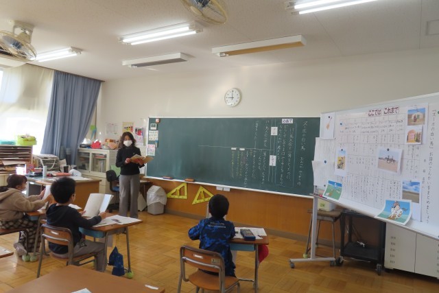 「スーホの白い馬」を読んでいます。今日はスーホがけい馬大会で一等をとったのに、とのさまがやくそくを守らなかった場面について読み取っていました。場面や気持ちなどが分かる言葉に気を付けて読んでその状況を想像しながら読んでいます。ただ単に自分が感じたことではなく、書かれている言葉や文を根拠に読み取ることができるようになっています。