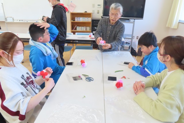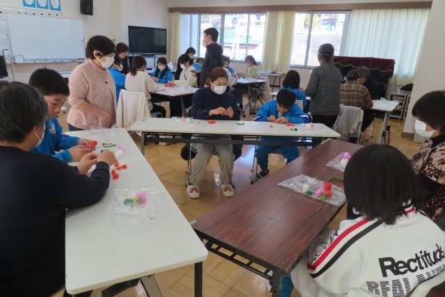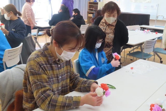 2月20日(金)6年生 親子で繭花コサージュ作り(更生保護女性会協力)2