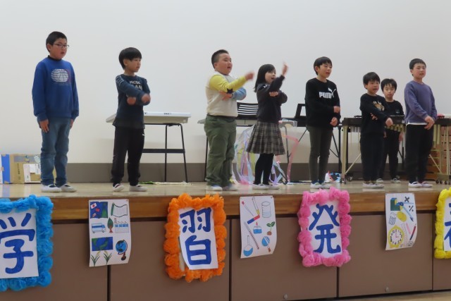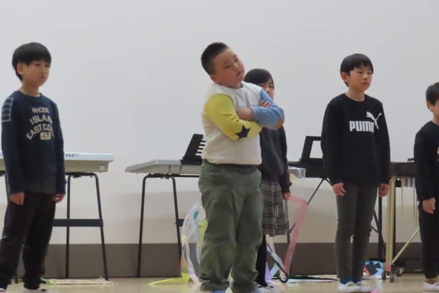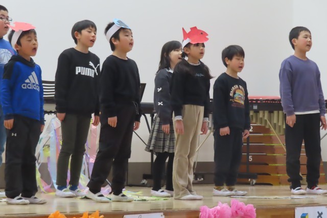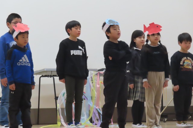 2年生を中心に音楽劇「スイミー」、3年生を中心に音読「三年とうげ」を発表しました。2・3年生らしく元気よく大きな声で堂々と!この発表会のトップバッターという重要な役割を見事やりきりました!とても長い長いセリフをばっちり覚えた努力に拍手です。