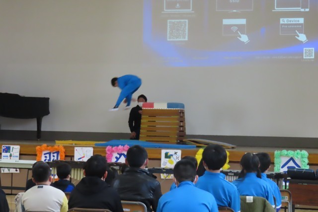 4年生が伝えたかったのは「成長」です。主に体育のとび箱や長縄、算数の授業で分かるまで本気で考えたりみんなで悩んだりして学習を充実させている風景、合奏を披露しました。そして最後に一人ずつ大きな声で、この1年間の自分の「成長」や「5年生になったら」夢や目標を語り、そして家族への感謝の気持ちを伝え、感動の空気に包まれました。
