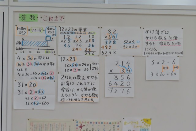 「2けたの数をかける計算」今日は「12×8×5」のかけ算ができるようになりました。順番に計算するのではなく・・・計算する順序を変えてみたら・・・。何十や何百になるかけ算が見付かれば!工夫して計算することの楽しさが味わえるようになるまで!頑張りましょう!算数は「は(やく)・か(んたん)・せ(いかくに)」大事です。
