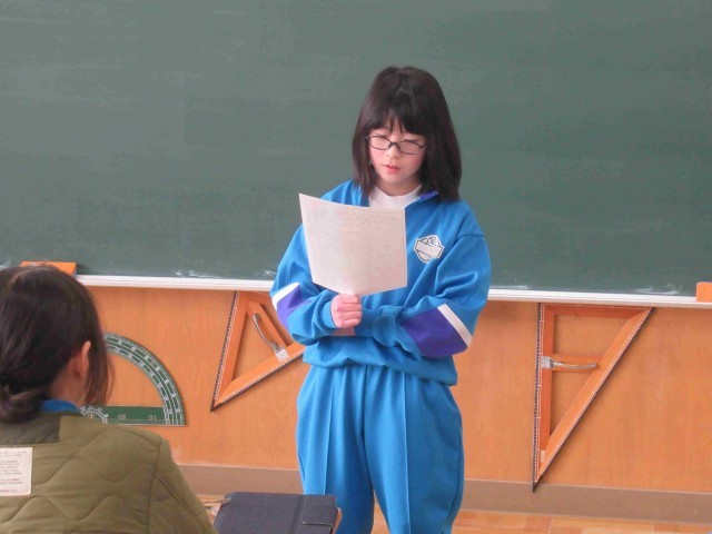 6年生は総合的な学習の時間に職業調べを進めています。この時間は調べた職業について、発表を行いました。児童は自分が調べた職業の仕事内容、やりがいや魅力、必要とされる能力や資格などを、分かりやすく発表していました。質問に対しても、その仕事のよさや魅力についてしっかりと答えていました。卒業を間近に控えた6年生。職業調べをとおし、将来の夢やイメージを膨らませていることが伝わりました。