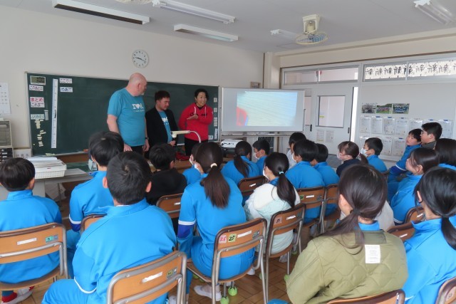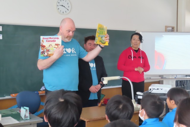 どの学級も一番人気はピラニアのお話でした。さすがの5・6年生はだいぶ英語の聞き取りがよく、反応もなかなかのものでした。そして絵本の読み聞かせだけではなく、リジャイナ市の紹介も(もちろん英語で)聴きました。今は冬の時期です。カナダの冬がどれだけ寒いのか、リジャイナ市の町の様子は?冬のスポーツなど遊び方は?日本では味わえないようなことを知り、カナダ、特にリジャイナのことをもっと知りたい!行ってみたい!気持ちが強くなったようです。