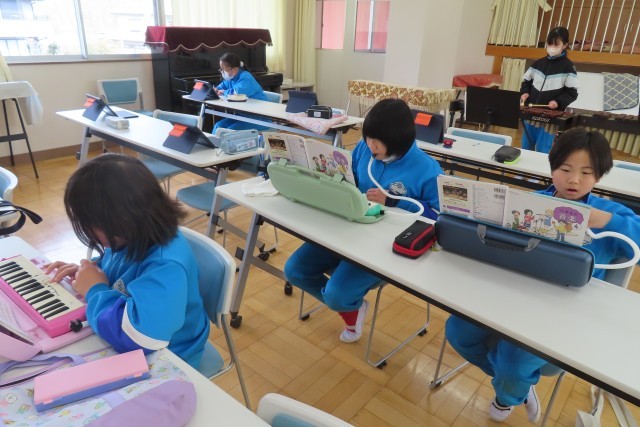「鉄腕アトム」のメロディーがとても楽しそうに軽快に音楽室からきこえてきました。いろいろな楽器に分かれて練習をしていました。「これまで」学習してきた音階や音符、休符や記号などしっかり身に付いているのでよく楽譜をよむことができ、それが演奏の上達につながっていることが分かりました。そして一番の秘訣は「みんなと一緒に演奏を楽しみたい!」「はやくみんなであわせたい!」という「やる気いっぱい」な意欲だと感じました。