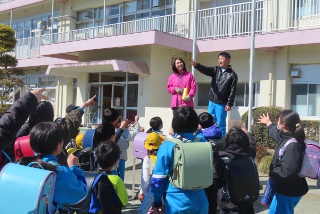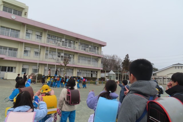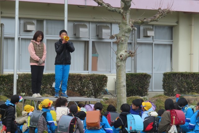 11日(水)から今日までの3日間は集団下校でした。班ごとにみんなで校庭に集合すと6年生からのメッセージが伝えられます。初日と2日目は東日本大震災の被災地のことを考えた発言が聴かれ、心にしみました。今日は、今年度の残り少ない学校生活をみんなが元気に過ごせるように週末の体調管理には十分に気を付けようとの呼びかけがありました。来週もまたみんな元気で会いましょう!