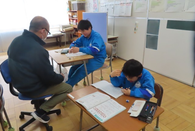 1年生と6年生の2人とも算数でこの1年間の復習問題を頑張っていました。1年生は計算を、6年生は図形に関する問題を真剣に頑張っていました。いつもどの学習にも「やる気いっぱい」の2人です。一生けんめい頑張った自分に自信をもって次の学年に進んでほしいと思います。バッチリ太鼓判を押します!