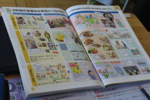 「2年間の学習を中学につなげよう」これが今日の学習で大切に考えたことです。「これまで」どんなことを学習したのか?ちょうど教室では、自分たちの生活と環境や資源との関わりについて学習してきたことをふり返り、持続可能な社会の実現のために学んだことを実践しよう!という気持ちをもっている6年生の姿を見ることができました。家庭科の学習はもちろんですが、こうやって学校で学んでいることがすべてこれからの持続可能な社会の担い手である児童にとって大切なことばかりだということに気付いてもらいたいです。