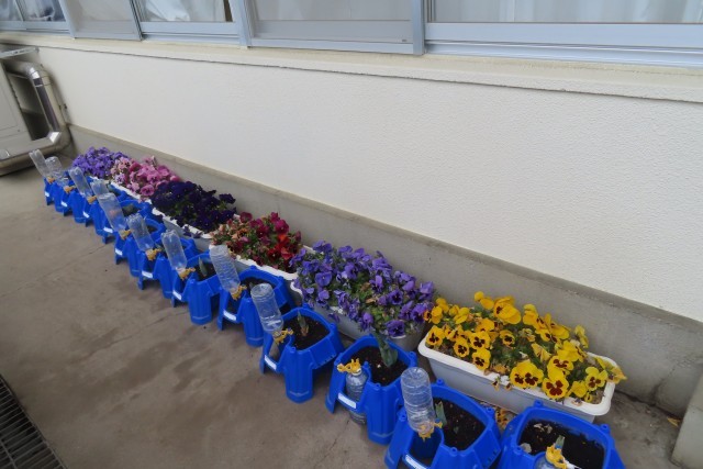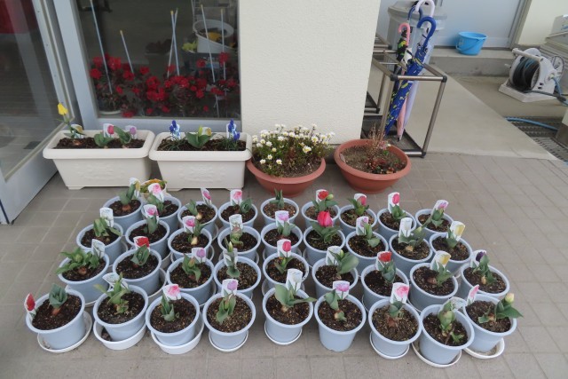 「えっ?これは桜?梅かな?」と見間違えてしまうくらい桜や梅に似ている「あんず」の花がきれいに咲いています。そして児童がみんなで毎日水やりをして育てているパンジーやチューリップも、素敵な春を迎える準備を進めています。
