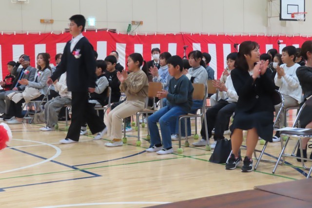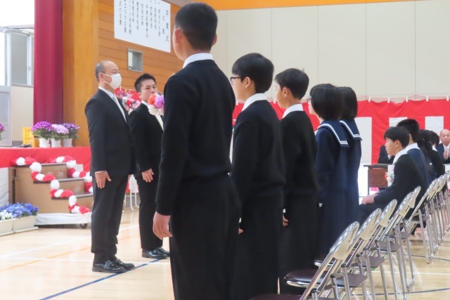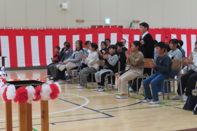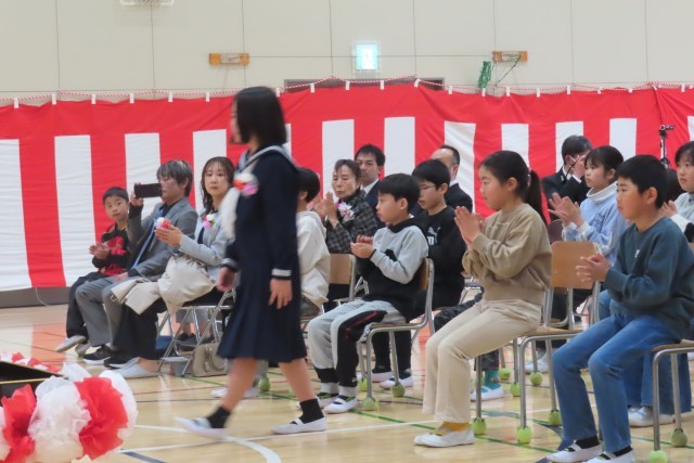 卒業生11名が、6年間の思い出、学びを胸に、堂々と入場しました。大切な家族、後輩たち、そして地域からのご来賓の方々に見守られ、会場中が温かい拍手に包まれて・・・いよいよ卒業式の始まりです。