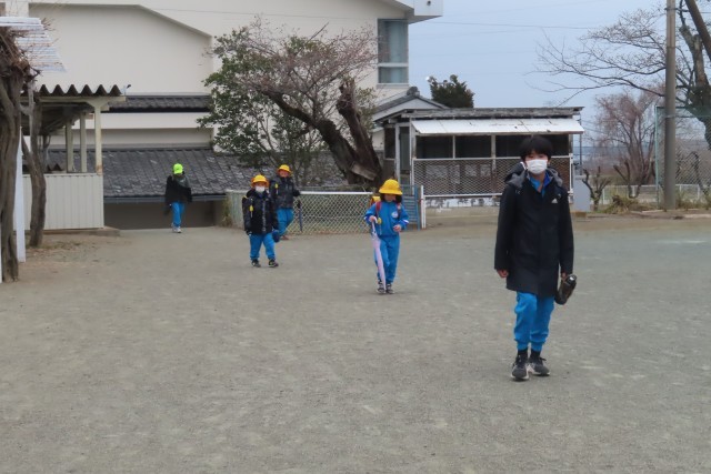 今朝も「笑顔いっぱい」で元気に登校しました。「ほんとに 6年生 もう学校にこないの?」と1年生。6年生が一緒に登校しないさみしさがありますが、4年生や5年生が「まかせてね!」と言っているようにも感じました。 保護者、地域の皆様には、いつも登下校の見守りをありがとうございます。6年生が一緒にいませんが、新しい班長たちが「やる気いっぱい」なので、引き続きご支援をよろしくお願いいたします。