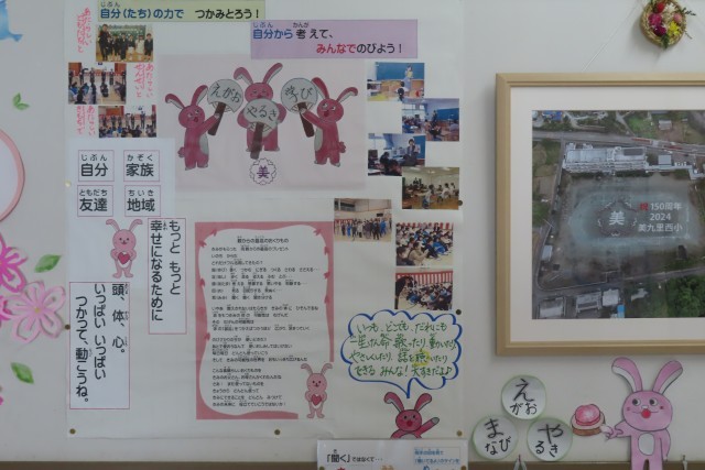 新たな気持ちで令和8年度そスタートさせた55名のみんなのこと、いつも応援してくれている「西うさぴょん」です。みんなが大好きな西うさぴょんが、みんなにメッセージをおくってくれました。「やる気いっぱい」な瞳キラキラな児童のことを本年度も応援しています。