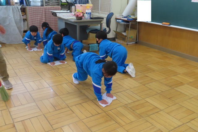 初めてのお掃除もすごくすごく上手です。それをほめると1年生はこう言いました。「だって、6ねんせいが おしえてくれるもん!」そういう気持ちをもって生活しているきもちに感激しました。「ありがとう」の気持ちをこうやってしっかり言葉で表現して伝えることができる1年生は素晴らしいです。