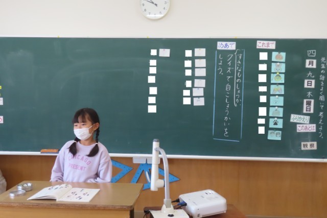 とっても楽しそうに国語の学習中です。今日は自分の名前の一文字一文字を使って好きなものを紹介していました。それをクイズ形式で友達や先生に当ててもらいます。「あ」のときは「あんこ」!「さ」のときは「○○ざわ せんせい」みんな大好きです!そして他にも友達の好きなものを結構はやくあてていました。お友達のこと、よく分かっているね!好きなものがいっぱい隠れている自分のお名前を大切にしていってね!