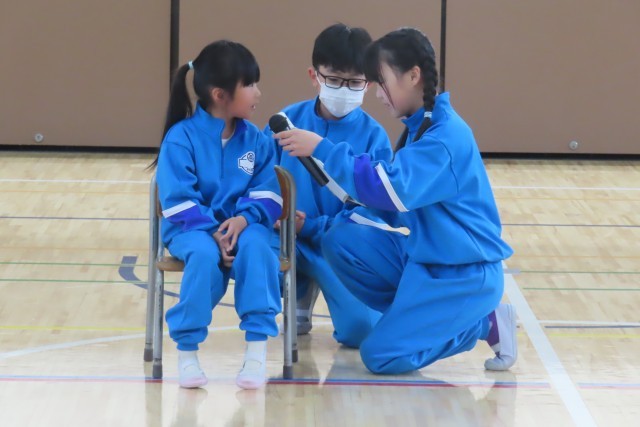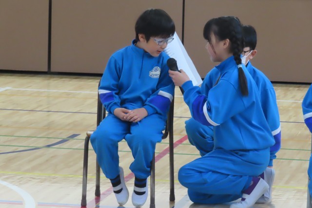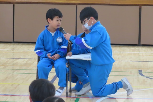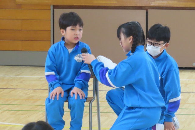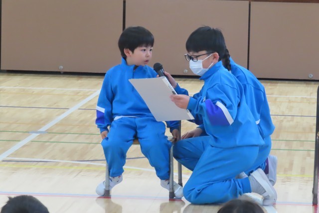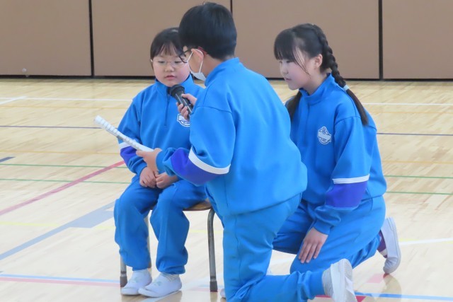 今朝は「1年生を迎える会」をしました。1年生紹介の場面では、6名の1年生が本当にしっかりと自分の名前、好きな食べ物や動物などのインタビューに答えることができて感心しました。もうすでにみんな仲良くなった1年生のことですが、さらに知ることができて、上級生も職員も嬉しく思いました。
