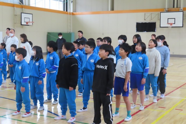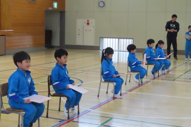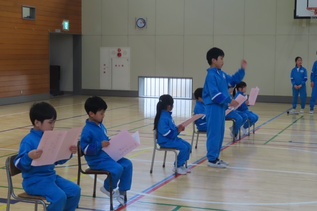 1年生に上級生から校歌のプレゼントがありました。5年生からは1年生の一人一人に校歌の歌詞カードを贈りました。上級生は本当に一生懸命歌って聴かせてあげました。特に2年生は「1ねんまえのこと おもいだすよ」と心を込めて歌っていました。心のこもった校歌のプレゼントに1年生は嬉しそうでした。