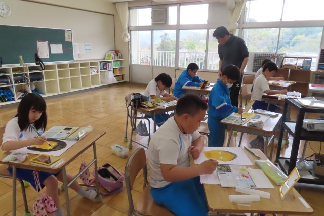4年生の図工の学習もワクワクしながらのスタートです。今日は自分の顔をよく見て描きます。「これまで」3年生のときまでにたくさん身に付けてきた表現の仕方をフルに活用して、今日はバランスよく描くにはどうしたらよいか?を考えて表現していました。どんどん表情が出てきて、画用紙から飛び出してきそうなくらい?!生き生きと表現できていて、4年生らしさを感じました。