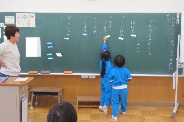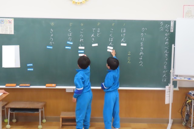 4時間目は学級の係を決めました。6つの係に2人ずつ。スムーズに決まりました。「はやく しごとしたいな!」という声が聞こえてきそうなくらい「やる気いっぱい」のワクワク感が伝わります。みんなのために与えられた自分の役割をやり遂げるという経験が1年生をどんどん成長させます。楽しみです。
