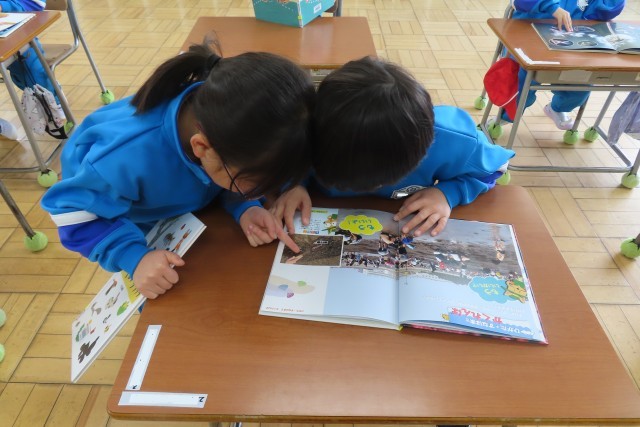 朝の支度がとっても早くできるようになって、準備をするとすぐに読書に夢中です。学級文庫の他にも先生が図書室から借りてきた本が大人気です。本のページをめくってみるとワクワクすることがいっぱいなので、先生や友達とそのワクワク♪をお話しています。今日の給食メニューも楽しみで、大盛り上がりでした!今週もすてきな1週間になりそうですね。