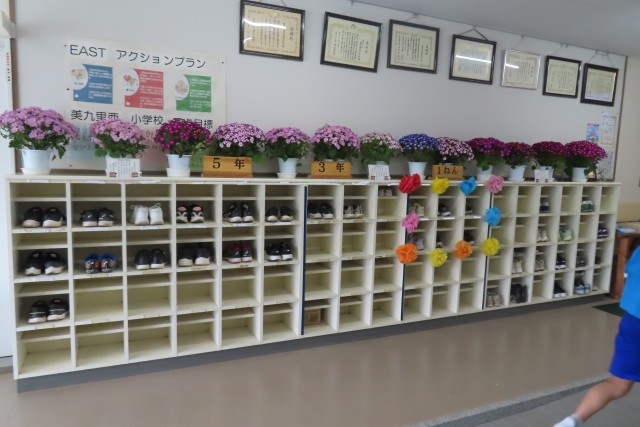 いつも下駄箱の靴をきれいにそろえる習慣ができているところ。言われてやるのではなく進んでできること。「そろえよう」と思う気持ちが定着できているところに感心しています。玄関を見るとそこで過ごす人のことがよく分かるものです。美九里西小の児童はみんな美しい心の持ち主です。