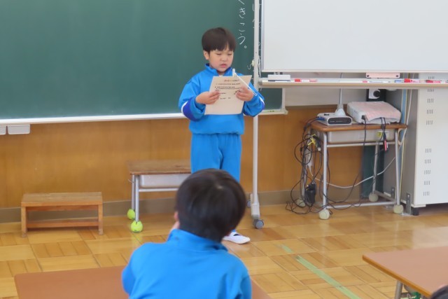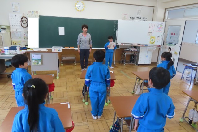 朝の会がとってもスムーズにできるようになりました。それは「しかいの○○くんが じょうずにできるもんね!」係や当番の仕事が日に日にうまくできるようになっています。係や当番などの自分の役割をがんばってみると、みんなの気分がよくなって、充実して過ごせることをこうやって学んでいます。「やる気いっぱい」1年生です。